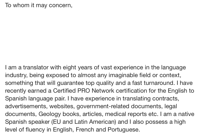 Como puedes ver, este traductor hizo copia y pega del correo que envía siempre, sin molestarse en adaptarlo al proyecto en cuestión y sin esforzarse ni siquiera por incluir mi nombre.